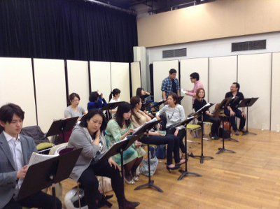 間もなく開始の立ち稽古に向けて、音楽稽古が進行中の当公演。