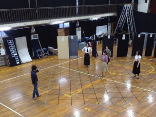スタジオ内に東京文化会館大ホールの原寸大の舞台面が作られました。今のところ、パネルと将棋盤のような床だけで、至ってシンプルな状態です。